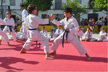El Maestro de Karate local Juan Ruiz fue el encargado de dirigir la demostración que contó con alumnos pertenecientes a este colegio y otros de la localidad.