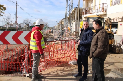 El alcalde de La Carlota, Antonio Granados, junto con el concejal de Urbanismo, Francisco J. Martín, han visitado las obras del Proyecto del nuevo acerado y drenaje superficial en la avenida Córdoba de El Arrecife.