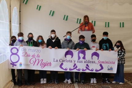 Día de Internacional de la Mujer en La Carlota, con la participación de nuestro alumnado de secundaria para reivindicar la igualdad entre mujeres y hombres, donde se ha realizado una concentración y la lectura de un manifiesto. "Somos el presente, quienes tenemos la responsabildad de construir un mejor futuro".