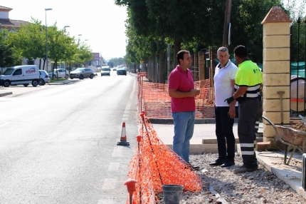 El alcalde de La Carlota, Antonio Granados, junto con el concejal de Urbanismo, Francisco Javier Martín, han visitado las obras correspondientes a la cuarta fase de la eliminación de barreras arquitectónicas en los acerados de las vías del municipio.