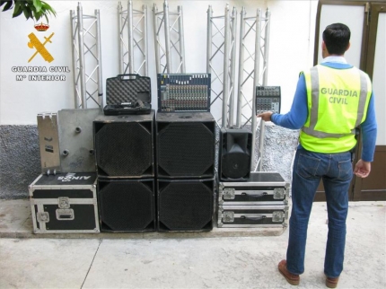 La Guardia Civil tuvo conocimiento que el propietario de un equipo de sonido profesional, valorado en más de 20.000 € ,que le había sido sustraído el pasado mes de agosto en la pedanía de La Carlota, “El Rinconcillo”, que el mismo, había visto instalado parte del equipo de sonido sustraído en una caseta de la Feria de la Tapa, celebrada recientemente en la localidad de Palma del Río, por lo que se procedió a la intervención del citado equipo de sonido.