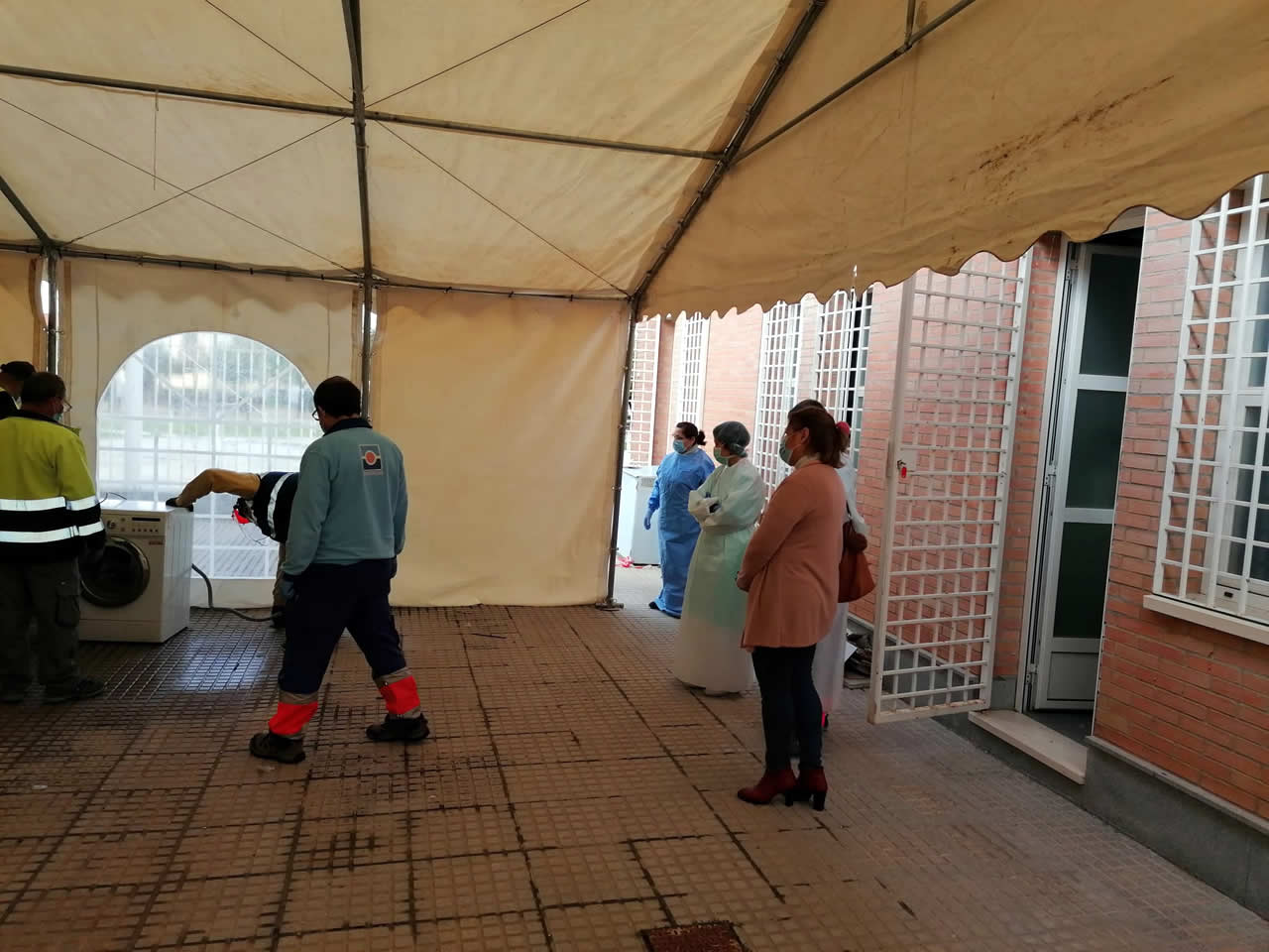 El Ayuntamiento de La Carlota ha instalado una carpa junto al Centro de Salud del municipio, a petición de la dirección del centro, con el objetivo de colaborar en las tareas de lucha contra la propagación del Coronavirus, mediante la desinfección de la ropa y el material del personal del centro médico.