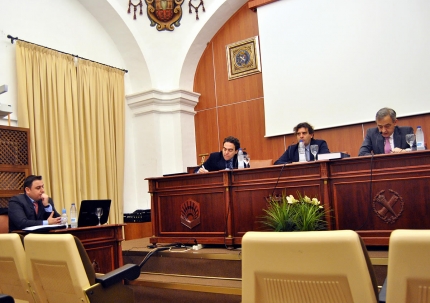 El acto se celebró a las 12 del mediodía y el doctorando defendió su trabajo ante un tribunal compuesto por especialistas de diversas épocas, los profesores doctores D. José Miguel Delgado Barrado (Catedrático de Historia Moderna de la Universidad de Jaén), D. Juan Francisco Jiménez Alcázar (Profesor Titular de Historia Medieval de la Universidad de Murcia) y D. Enrique Melchor Gil (Profesor Titular de Historia Antigua de la Universidad de Córdoba). Martínez Castro se centró especialmente en el trabajo por él realizado, los contenidos del mismo, la metodología empleada y las conclusiones obtenidas. Finalmente terminó agradeciendo a las personas e instituciones que han colaborado en su trabajo, entre ellas su esposa, su familia, sus directores de tesis y algunas amistades sobre todo de La Carlota. Al acto asistieron los familiares del doctorando, algunos amigos, sus directores de investigación, un antiguo alumno de Secundaria hoy estudiante de Historia del Arte así como estudiantes de Doctorado de la Universidad de Córdoba. En la última parte del acto el tribunal dio a conocer los resultados de su evaluación, siendo puntuado el trabajo con la máxima nota que se concede a este tipo de estudios: Sobresaliente. Al día siguiente se procedió a la apertura del sobre con el voto secreto en el Rectorado de la Universidad y resultó que el tribunal había decidido premiar la tesis doctoral con la consideración de Cum Laude. Durante su intervención los miembros del tribunal destacaron diversos aspectos del trabajo, como su extensión (más de 800 páginas con letra “pequeña” y sin espaciar), la buena y clara redacción que posee, su presentación, la inmensa labor de campo que hay detrás, la correcta metodología empleada, el que abarque una visión integral e interdisciplinar del territorio y los ricos resultados que ofrece, si bien, como sucede en todos los actos de este tipo, también hicieron propuestas al doctorando para que pudiese ampliar y enriquecer determinados aspectos del trabajo.