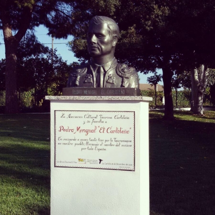 El pasado domingo 11 de diciembre, los jardines taurinos del Hotel el Pilar en La Carlota, descubrieron el busto de Pedro Mengual “El Carloteño”, novillero de los años sesenta que destacó por su valor y entrega en su trayectoria profesional, siendo sus mejores temporadas la 1965 y 66.