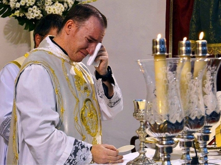 Lágrimas de emoción embargan a este sacerdote de Cristo cuando debe decir hasta siempre a su feligresía porque la mano de Dios le traslada a otra misión.