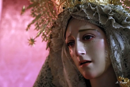 A la talla se le han colocado nuevas articulaciones y se ha procedido al retallado de sus manos, sobre las que se han aplicado imprimaciones de estucos y nuevas policromías al igual que al busto. Toda la imagen ha sido enguatada y tapizada al completo para facilitar las labores de restauración. Para sublimar su belleza, la dolorosa ha sido ataviada por Francisco Mira, vestidor de la Virgen, quien, además, la ha vestido en el estudio para su presentación tras la restauración. Gracias al reportaje de nuestro compañero Antonio Poyato, se puede apreciar con nitidez el excelente resultado de la intervención realizada sobre una imagen que ha recuperado todo su esplendor.