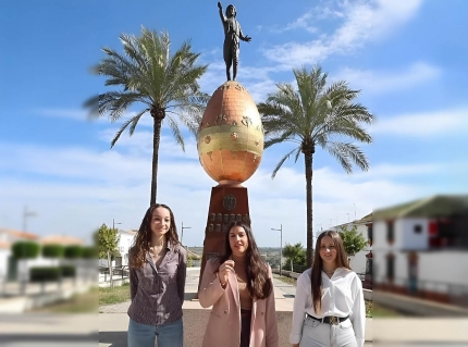 La concejala de Juventud, Inés Martínez, junto a Teresa Cruz y Andrea Mata, ambas pertenecientes a la Hermandad Virgen de los Dolores, han presentado un vídeo para poner en valor la tradición de pintar huevos de Pascua, una costumbre con más de 250 años de historia en La Carlota.