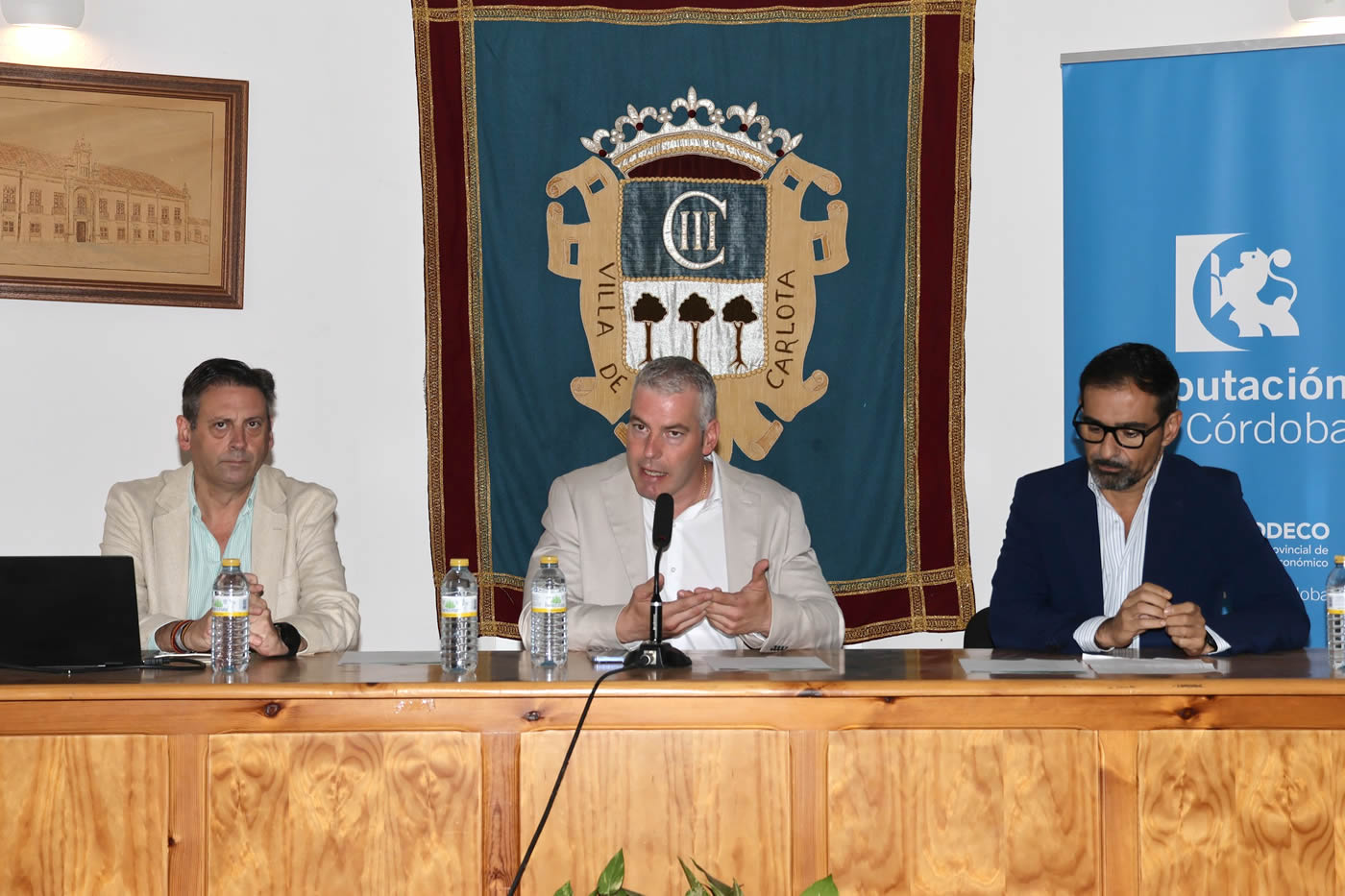 El Alcalde de La Carlota, Antonio Granados, y el diputado de Desarrollo Económico, Promoción y Empleo y presidente de IPRODECO, Félix Romero, ha dado la bienvenida a los asistentes, destacando la importancia de la innovación y la digitalización para fortalecer el tejido empresarial.