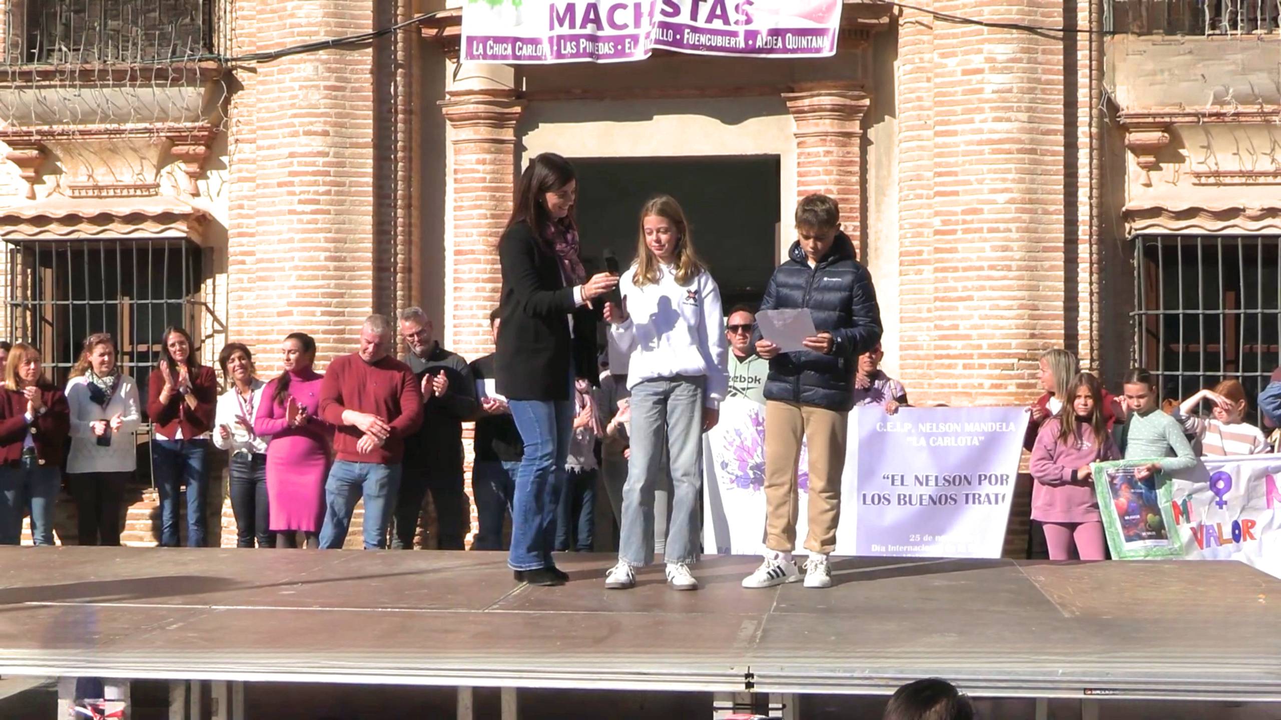 Dos alumnos del CEIP Tierno Galván, Victoria Ots y José Medina, leyeron un manifiesto elaborado por ellos mismos, centrado en el poder transformador de la música. Bajo su proyecto “Concierto Violeta”, defendieron que las canciones pueden transmitir valores de igualdad y convertirse en una herramienta educativa para un mundo más justo.