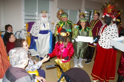 Desde las 16:15h de la tarde, los reyes junto a su sequito, acudieron al centro de Mayores José Lázaro Civil, acudiendo a esta cita anual, para entregarles polvorones sin azúcar.
