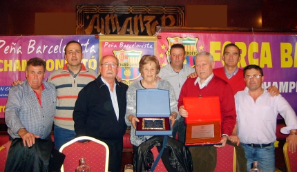 Y es por todo ello por lo que con mucho orgullo y satisfacción esta Peña le hizo entrega a "Paca" de dos placas conmemorativas de manos de su Presidente, en señal de agradecimiento a un matrimonio que para siempre estará en los corazones de todos los peñistas que conforman esta gran familia barcelonista carloteña.