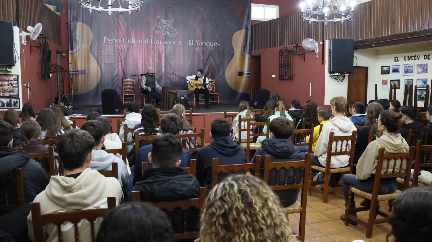 La Peña Flamenca El Yunque celebró el pasado viernes, un acto con motivo del Día del Flamenco, mostrando así su respaldo a esta conmemoración cultural. La entidad organizó una actividad en la que participaron alumnos del IES Nuevas Poblaciones y del centro El Sauce, con el objetivo de acercar este arte a la juventud.