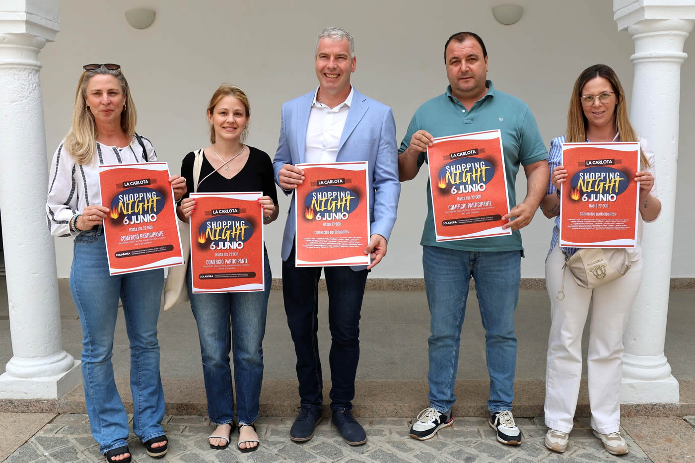 El alcalde de La Carlota, Antonio Granados, junto con el concejal de Gobernación, Francisco J. Martín, han presentado, acompañados por varias comerciantes locales, la Shopping Night de La Carlota 2025, que se celebrará el próximo 6 de junio, con un horario especial para esta jornada.