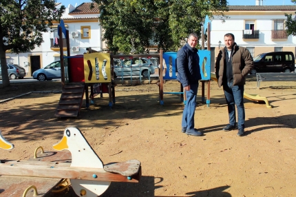 El alcalde de La Carlota, Antonio Granados, junto con el concejal de Urbanismo y Medio Ambiente, Francisco J. Martín, han visitado varios parques del municipio al comienzo de los trabajos del proyecto de ‘Reparación y adecuación de áreas de juegos infantiles en parques públicos de La Carlota y sus Departamentos’.