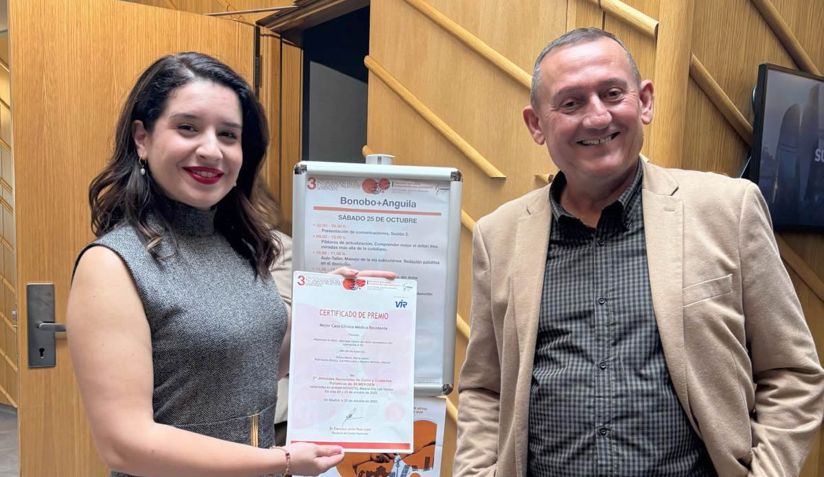 La médica residente del Centro de Salud de La Carlota, María Isabel Palma Marín, ha recibido el premio al Mejor Caso Clínico Médico Residente en las 3ª Jornadas Nacionales de Dolor y Cuidados Paliativos de SEMERGEN, celebradas los días 24 y 25 de octubre en Madrid.