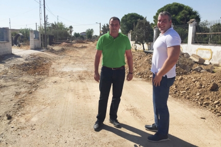 El alcalde de La Carlota, Antonio Granados y el concejal de Urbanismo, Francisco J. Martín, han visitado las obras que se están llevando a cabo con la II Fase de Mejora de infraestructuras viarias del Camino de La Plata, en el departamento carloteño de El Arrecife.