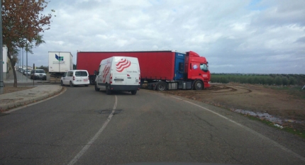 El camión, intentó acceder al camino de las Lagunillas, por una zona embarrada, quedando atrapado durante el mediodía de este jueves.