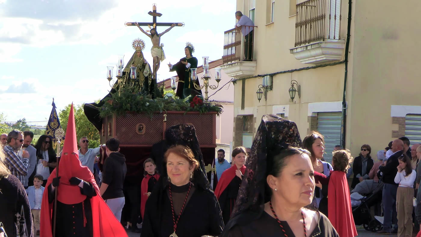 El paso de la Hermandad de María Santísima de los Dolores, Cristo del Amor y San Juan Evangelista recorre las calles acompañado por la devoción de sus vecinos.