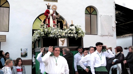 Este Miércoles Santo, la Hermandad de La Esperanza salió desde la Iglesia de María Auxiliadora de El Garabato bajo un cielo amenazante. Acompañada por la agrupación musical de Almodóvar, la Virgen recorrió las calles entre la emoción de los fieles, que no quisieron perderse el momento a pesar del mal tiempo.