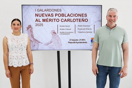 El alcalde de La Carlota, Antonio Granados y la concejala de Participación Ciudadana, Laura Bernier, han presentado oficialmente la primera edición de los Galardones Nuevas Poblaciones al Mérito Carloteño 2025, una iniciativa que tiene como finalidad reconocer públicamente a personas y entidades que, con su labor diaria, contribuyen de forma ejemplar al progreso del municipio, cuya entrega será el próximo, viernes, 27 de junio.