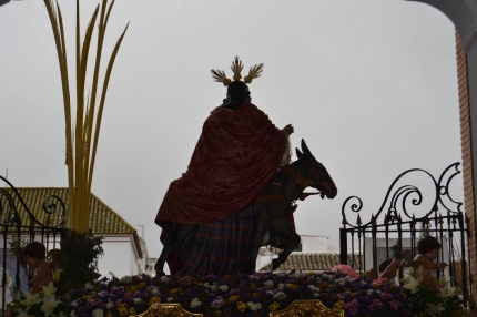El sol entre nubes solo hizo presencia para una breve salida de la Hdad. Del Padre Jesús y Maria de Nazaret (La Borriquita).